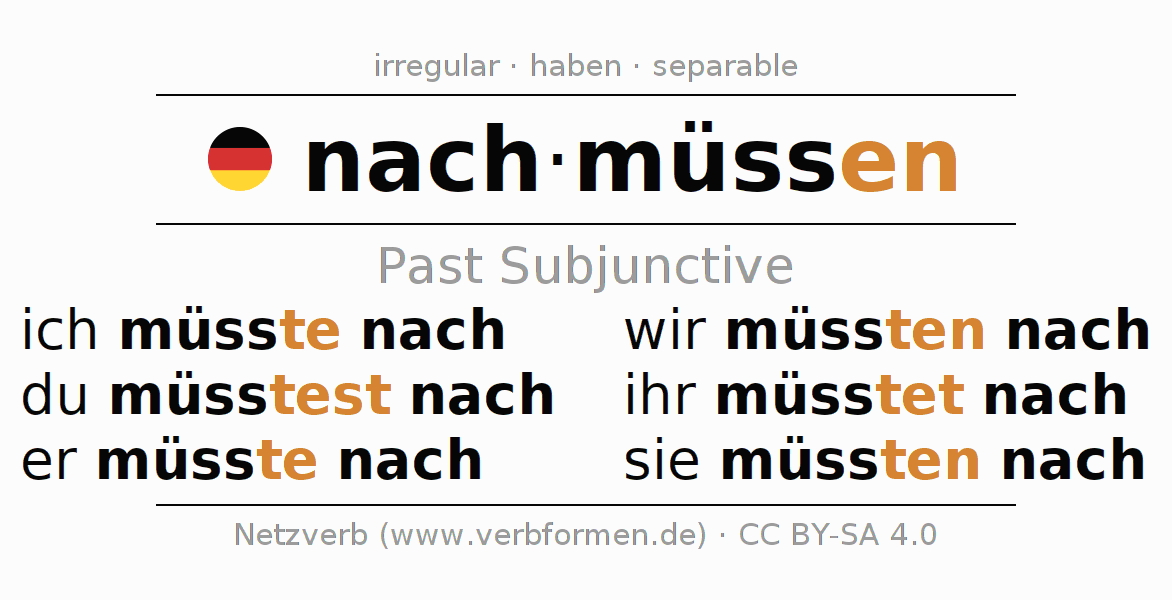 The verb nachmüssen fully conjugated in all persons and numbers in the Subjunctive Imperfect