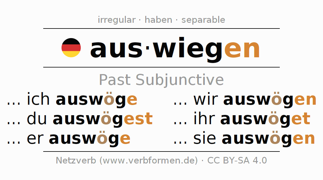 The verb auswiegen fully conjugated in all persons and numbers in the Subjunctive Imperfect