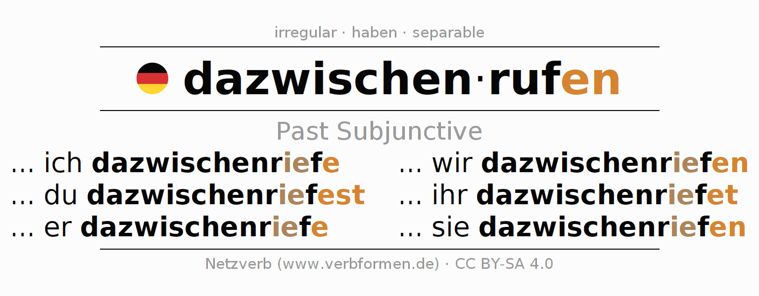 The verb dazwischenrufen fully conjugated in all persons and numbers in the Subjunctive Imperfect