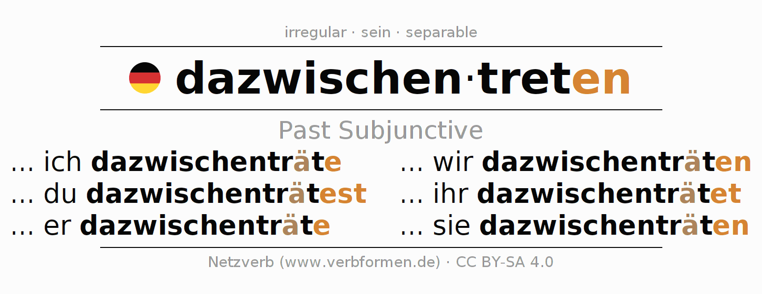 The verb dazwischentreten fully conjugated in all persons and numbers in the Subjunctive Imperfect