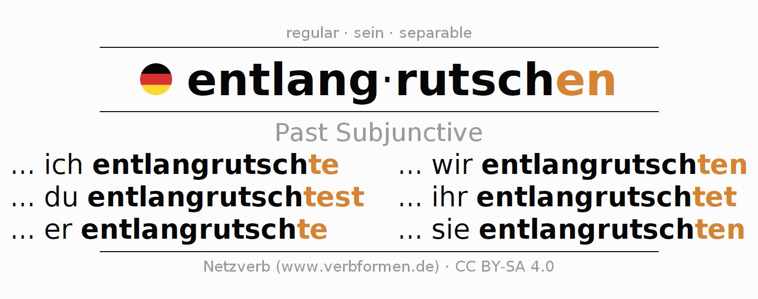 The verb entlangrutschen fully conjugated in all persons and numbers in the Subjunctive Imperfect