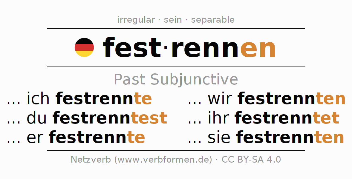 The verb festrennen fully conjugated in all persons and numbers in the Subjunctive Imperfect