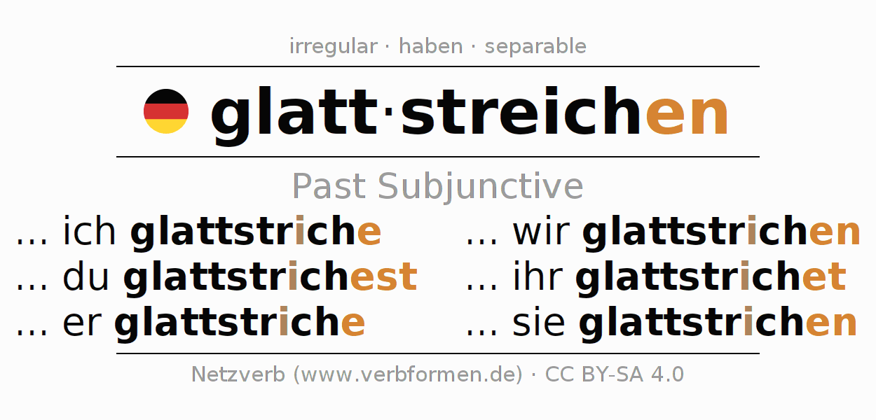 The verb glattstreichen fully conjugated in all persons and numbers in the Subjunctive Imperfect