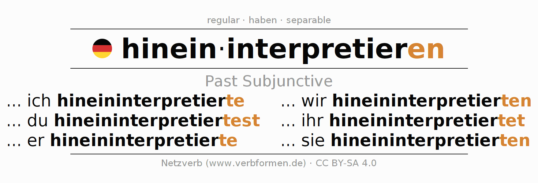 The verb hineininterpretieren fully conjugated in all persons and numbers in the Subjunctive Imperfect
