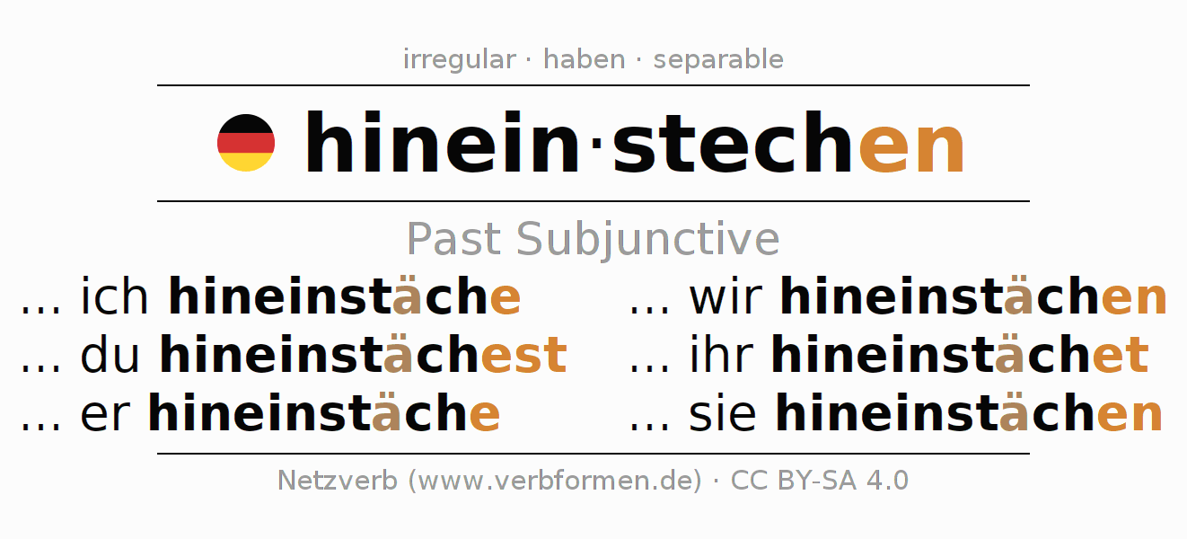 The verb hineinstechen fully conjugated in all persons and numbers in the Subjunctive Imperfect
