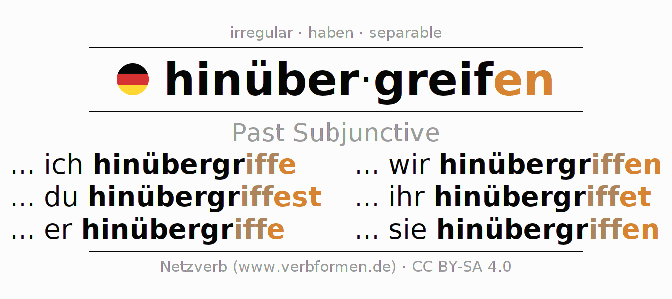 The verb hinübergreifen fully conjugated in all persons and numbers in the Subjunctive Imperfect