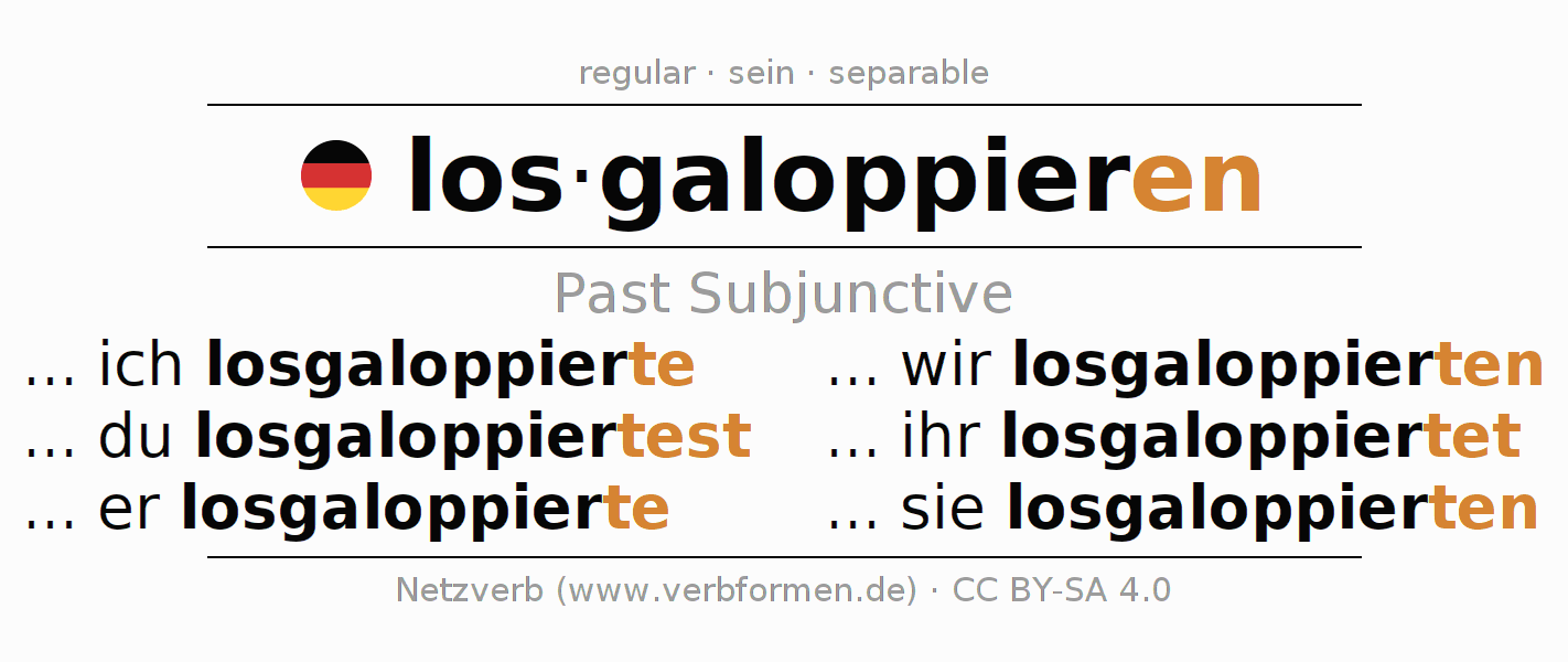 The verb losgaloppieren fully conjugated in all persons and numbers in the Subjunctive Imperfect
