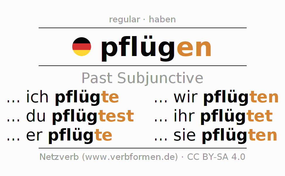 The verb pflügen fully conjugated in all persons and numbers in the Subjunctive Imperfect