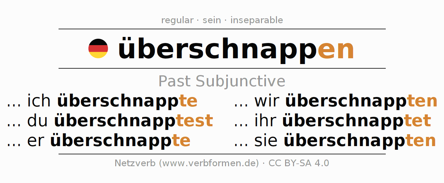 The verb überschnappen fully conjugated in all persons and numbers in the Subjunctive Imperfect