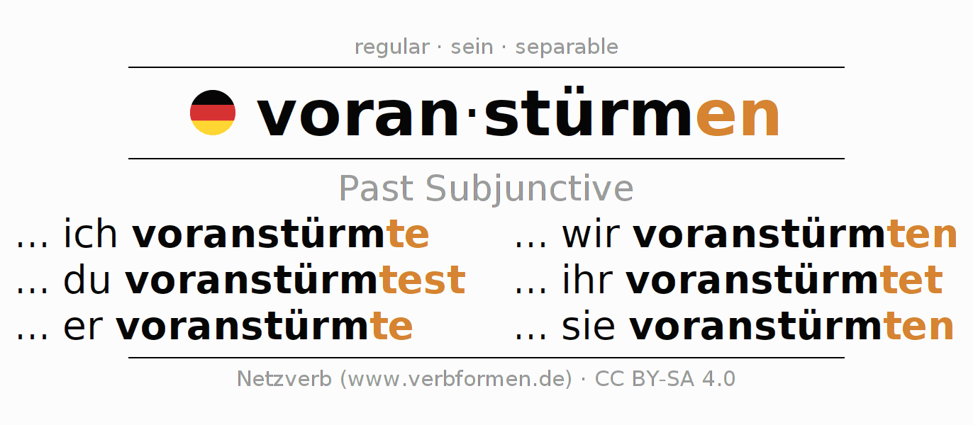 The verb voranstürmen fully conjugated in all persons and numbers in the Subjunctive Imperfect