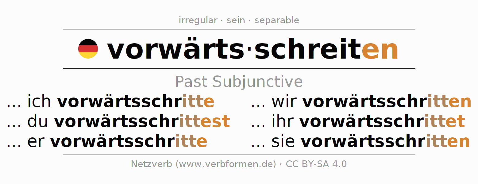 The verb vorwärtsschreiten fully conjugated in all persons and numbers in the Subjunctive Imperfect