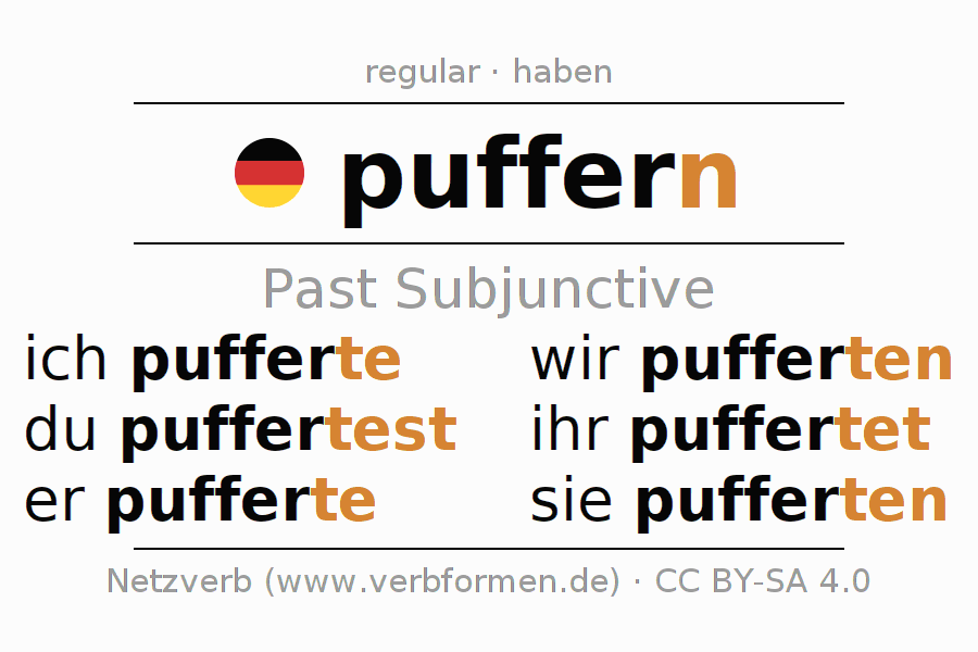 The verb puffern fully conjugated in all persons and numbers in the Subjunctive Imperfect