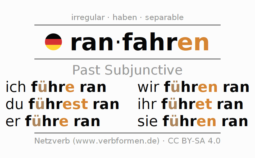 The verb ranfahren fully conjugated in all persons and numbers in the Subjunctive Imperfect