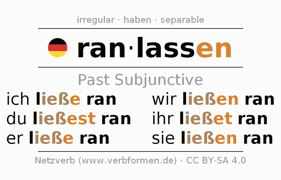 The verb ranlassen fully conjugated in all persons and numbers in the Subjunctive Imperfect