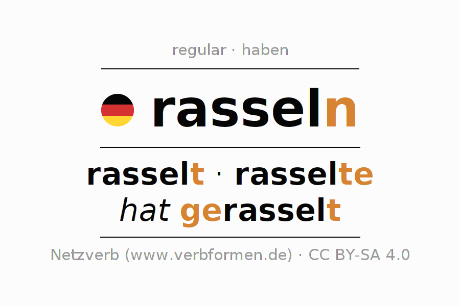 The verb rasseln (hat) fully conjugated in all persons and numbers in the Subjunctive Imperfect