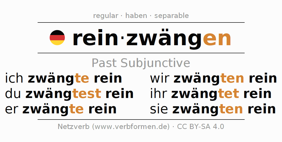 The verb reinzwängen fully conjugated in all persons and numbers in the Subjunctive Imperfect