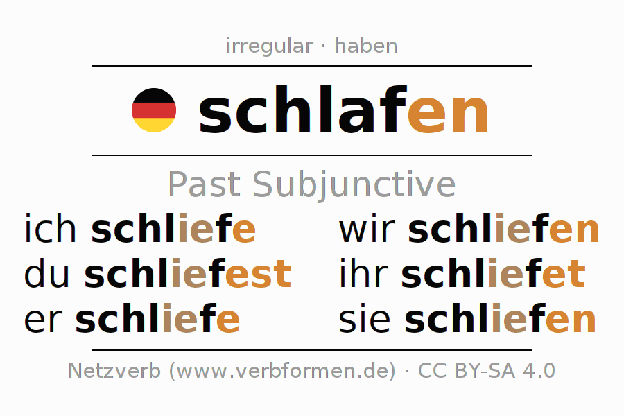 The verb schlafen fully conjugated in all persons and numbers in the Subjunctive Imperfect