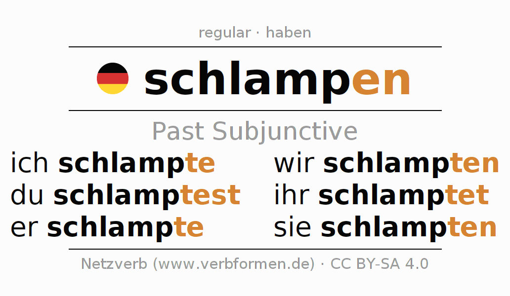 The verb schlampen fully conjugated in all persons and numbers in the Subjunctive Imperfect