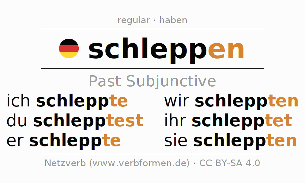 The verb schleppen fully conjugated in all persons and numbers in the Subjunctive Imperfect