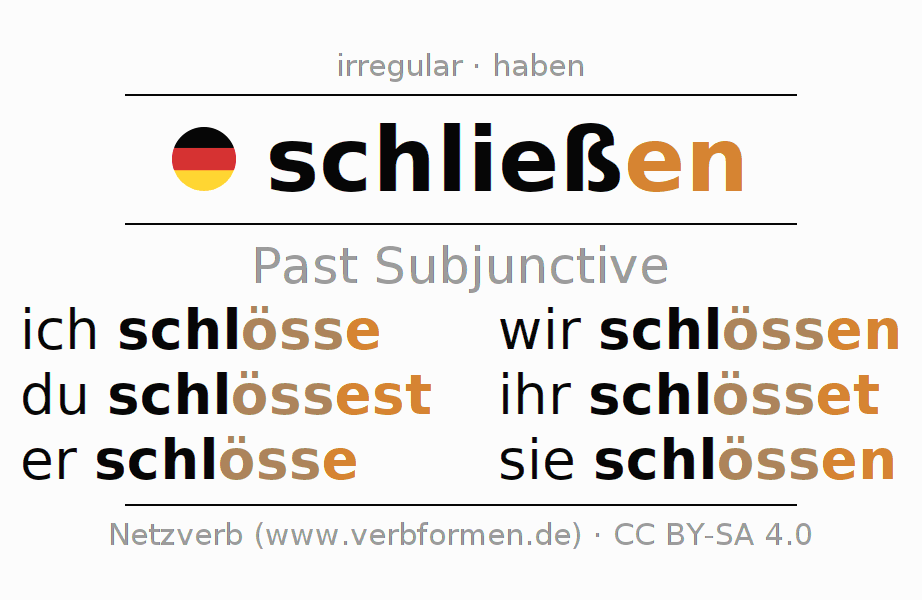 The verb schließen fully conjugated in all persons and numbers in the Subjunctive Imperfect