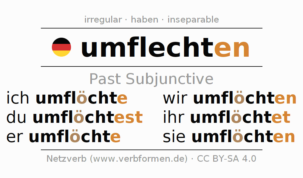 The verb umflechten fully conjugated in all persons and numbers in the Subjunctive Imperfect