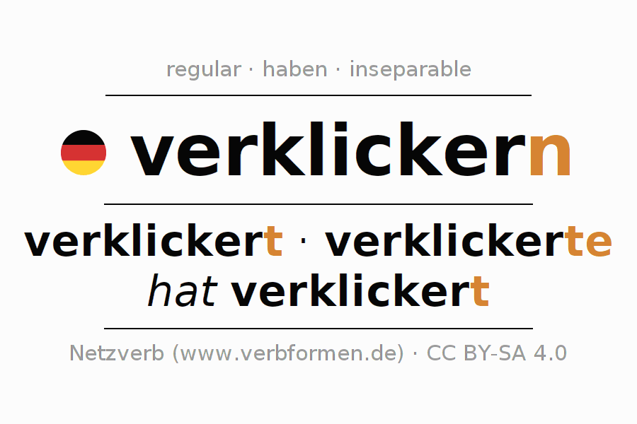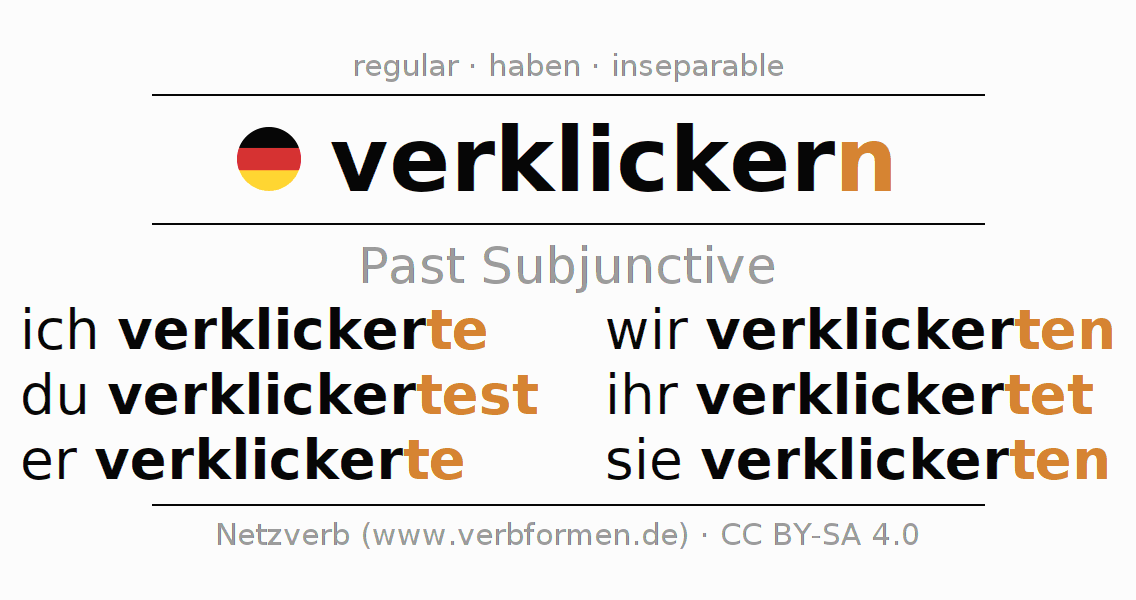 The verb verklickern fully conjugated in all persons and numbers in the Subjunctive Imperfect