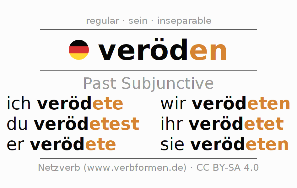 The verb veröden fully conjugated in all persons and numbers in the Subjunctive Imperfect