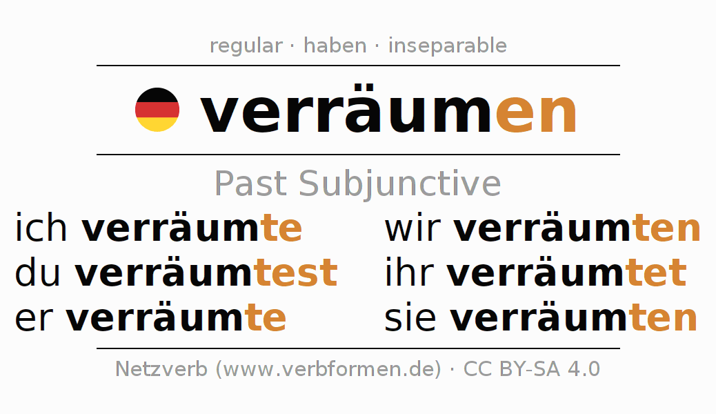The verb verräumen fully conjugated in all persons and numbers in the Subjunctive Imperfect