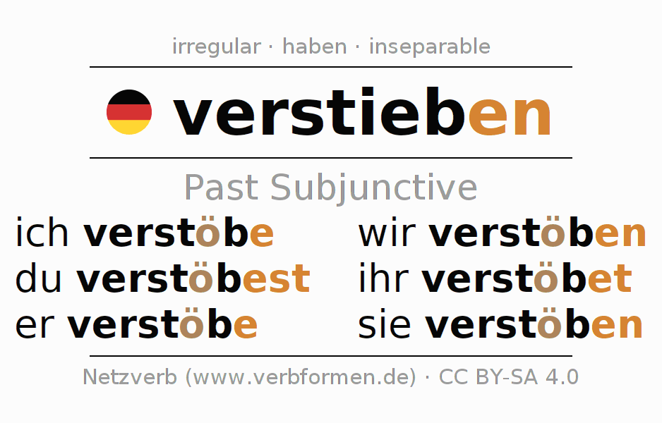 The verb verstieben fully conjugated in all persons and numbers in the Subjunctive Imperfect