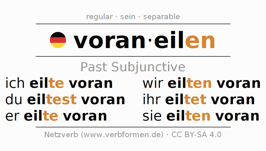 The verb voraneilen fully conjugated in all persons and numbers in the Subjunctive Imperfect