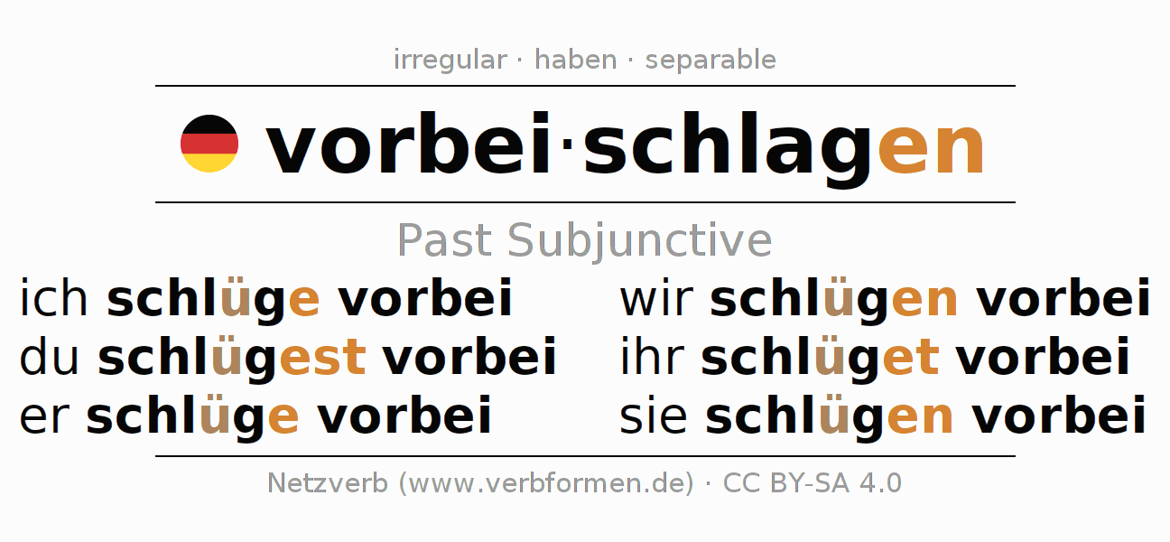 The verb vorbeischlagen fully conjugated in all persons and numbers in the Subjunctive Imperfect