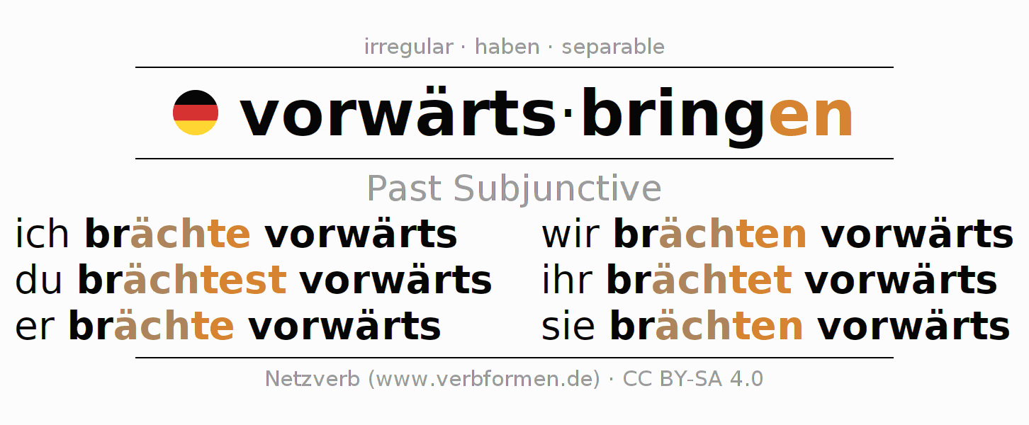 The verb vorwärtsbringen fully conjugated in all persons and numbers in the Subjunctive Imperfect