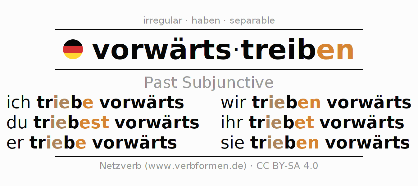 The verb vorwärtstreiben fully conjugated in all persons and numbers in the Subjunctive Imperfect