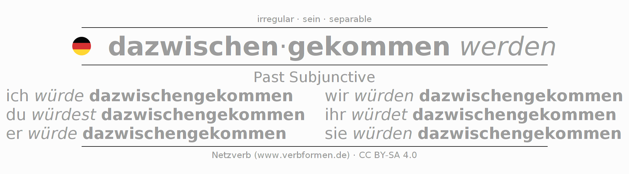 The verb dazwischenkommen fully conjugated in all persons and numbers in the Subjunctive Imperfect