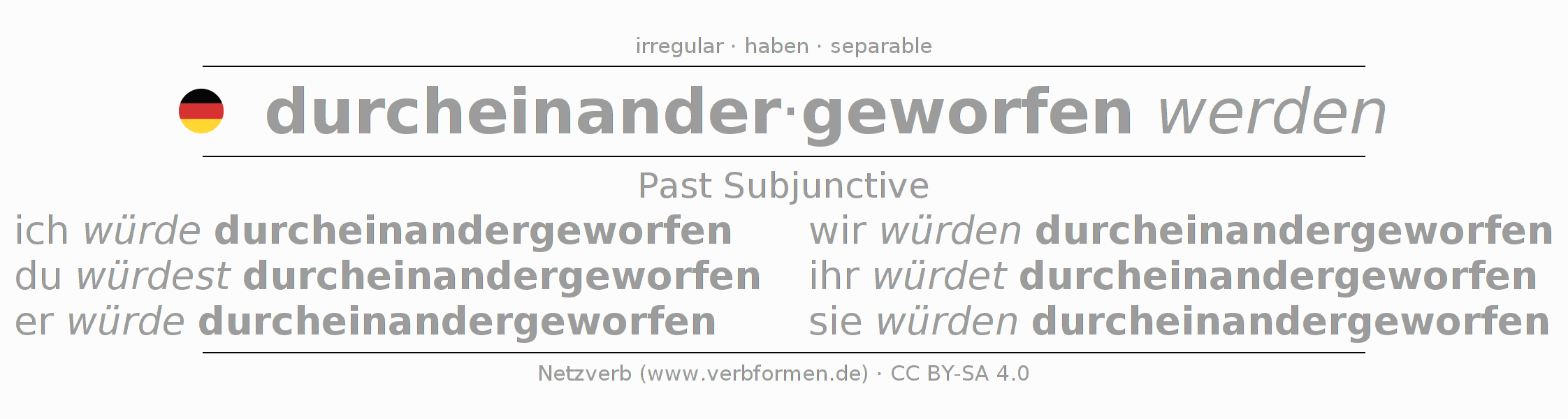 The verb durcheinanderwerfen fully conjugated in all persons and numbers in the Subjunctive Imperfect