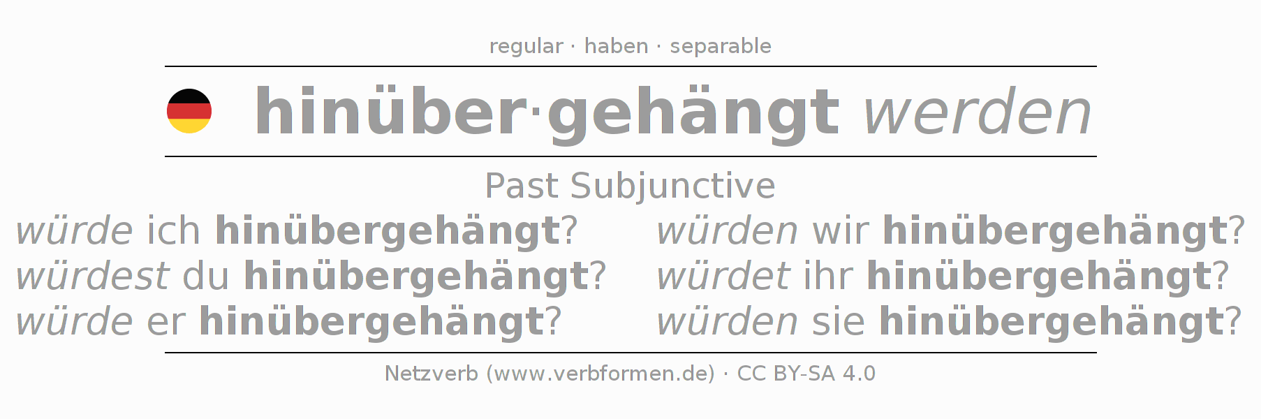 The verb hinüberhängen (regelm) fully conjugated in all persons and numbers in the Subjunctive Imperfect
