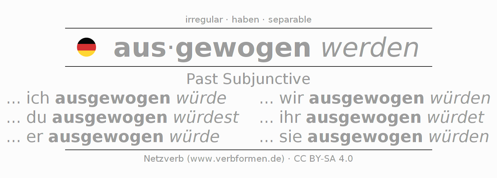 The verb auswiegen fully conjugated in all persons and numbers in the Subjunctive Imperfect