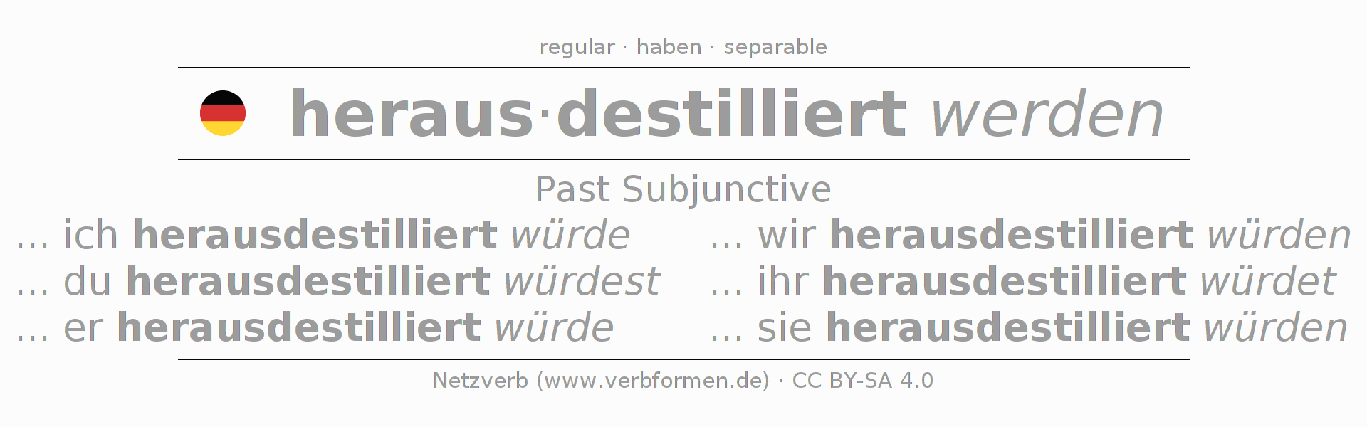 The verb herausdestillieren fully conjugated in all persons and numbers in the Subjunctive Imperfect