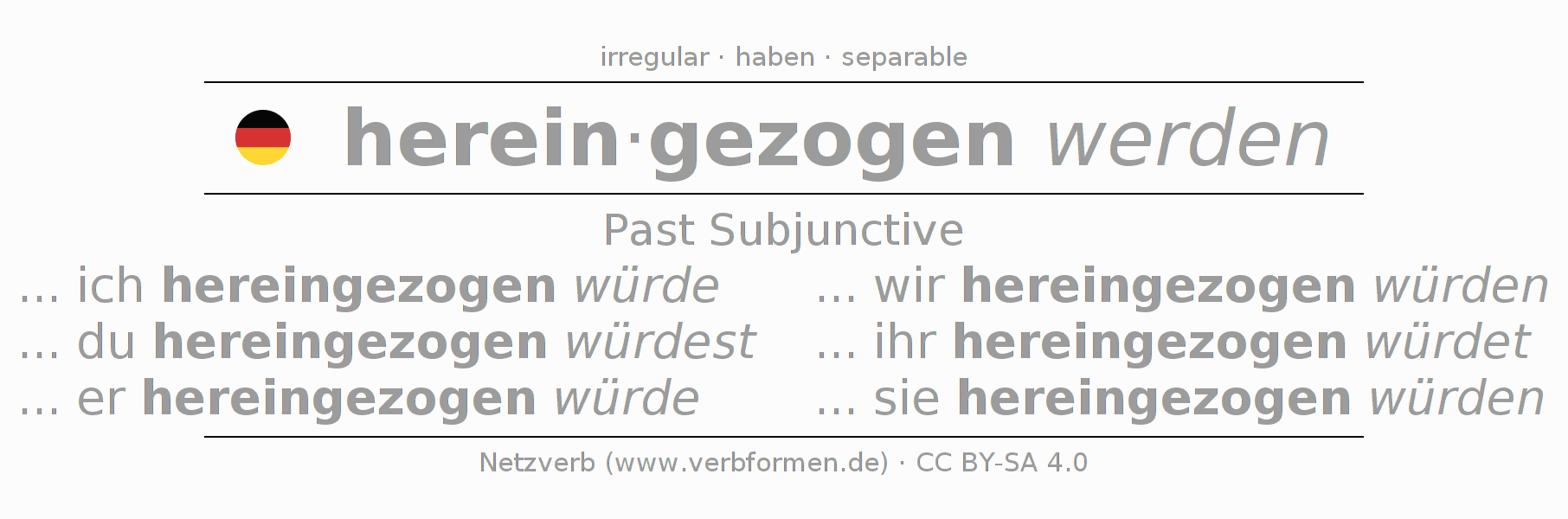 The verb hereinziehen (hat) fully conjugated in all persons and numbers in the Subjunctive Imperfect