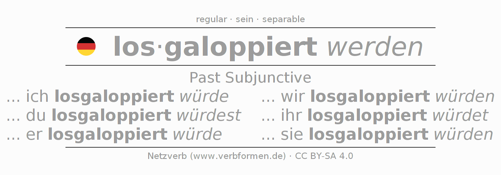 The verb losgaloppieren fully conjugated in all persons and numbers in the Subjunctive Imperfect