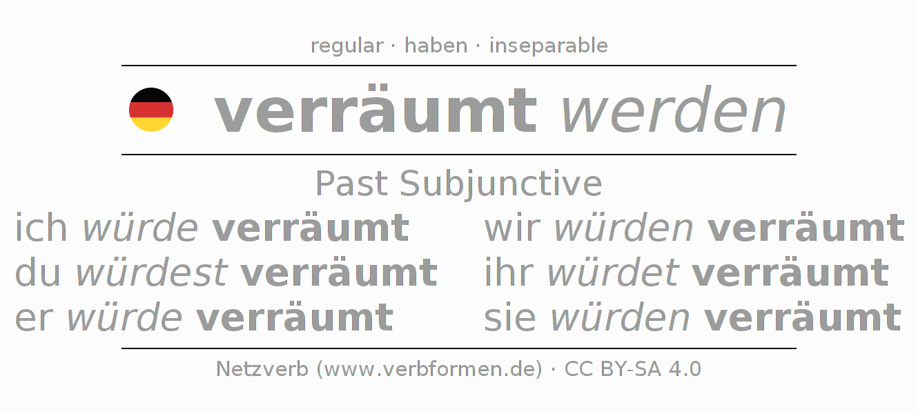 The verb verräumen fully conjugated in all persons and numbers in the Subjunctive Imperfect