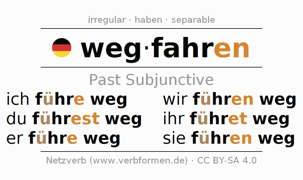 The verb wegfahren (hat) fully conjugated in all persons and numbers in the Subjunctive Imperfect