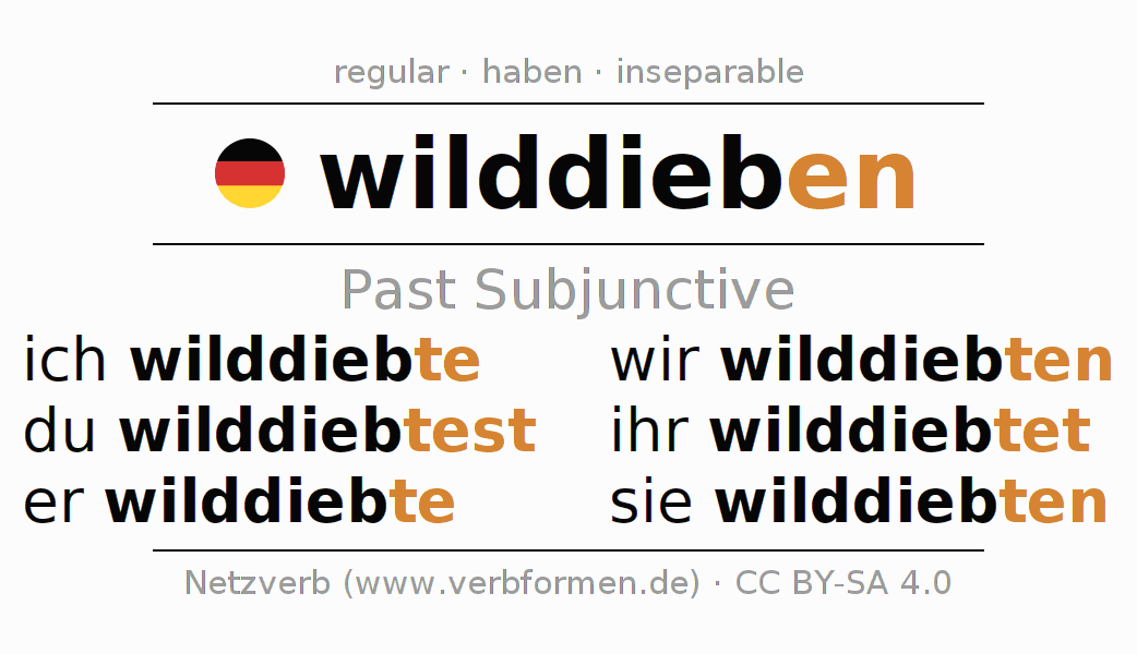The verb wilddieben fully conjugated in all persons and numbers in the Subjunctive Imperfect