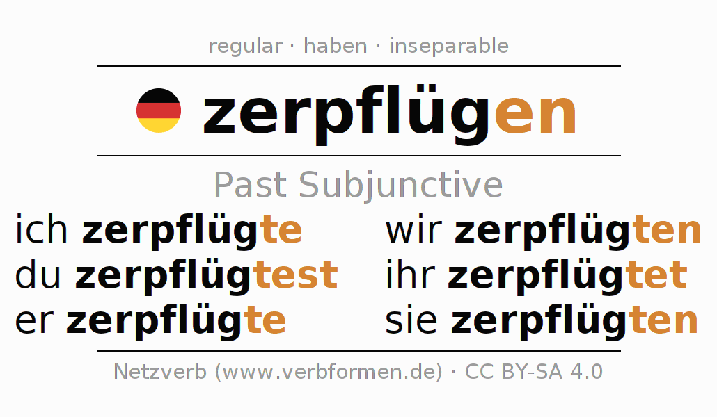 The verb zerpflügen fully conjugated in all persons and numbers in the Subjunctive Imperfect