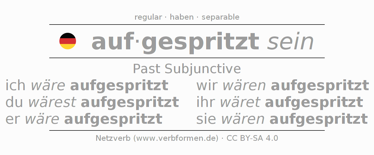 The verb aufspritzen (hat) fully conjugated in all persons and numbers in the Subjunctive Imperfect
