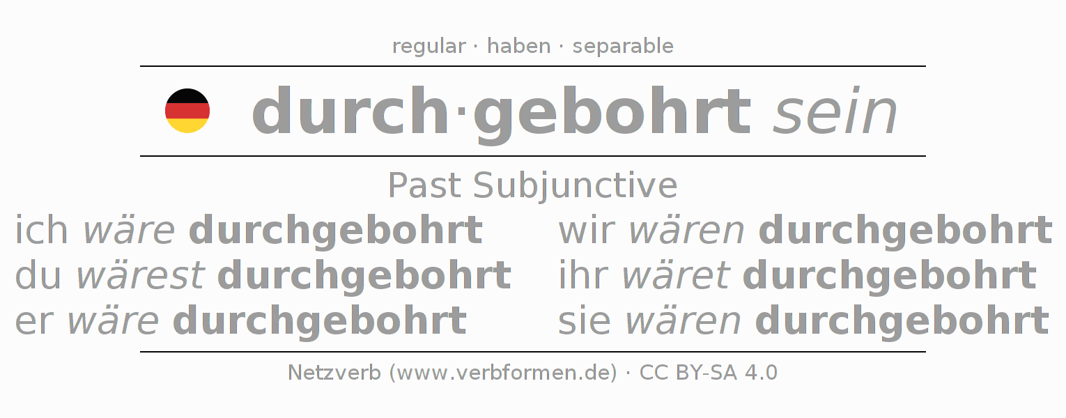 The verb durch-bohren fully conjugated in all persons and numbers in the Subjunctive Imperfect