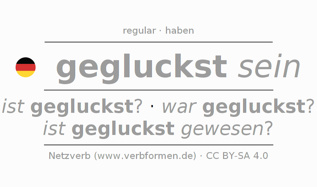 The conjugation of glucksen in Subjunctive Imperfect Form of possibility Statal Passive is wäre ich gegluckst?, wärest du gegluckst?, wäre er gegluckst?, wären wir gegluckst?, wäret ihr gegluckst?, wären sie gegluckst?.The conjugation corresponds to certain grammatical rules. Likewise the requirements for the conjugation of the simple verb forms of glucksen in Imperfect Subjunctive. Comments ☆