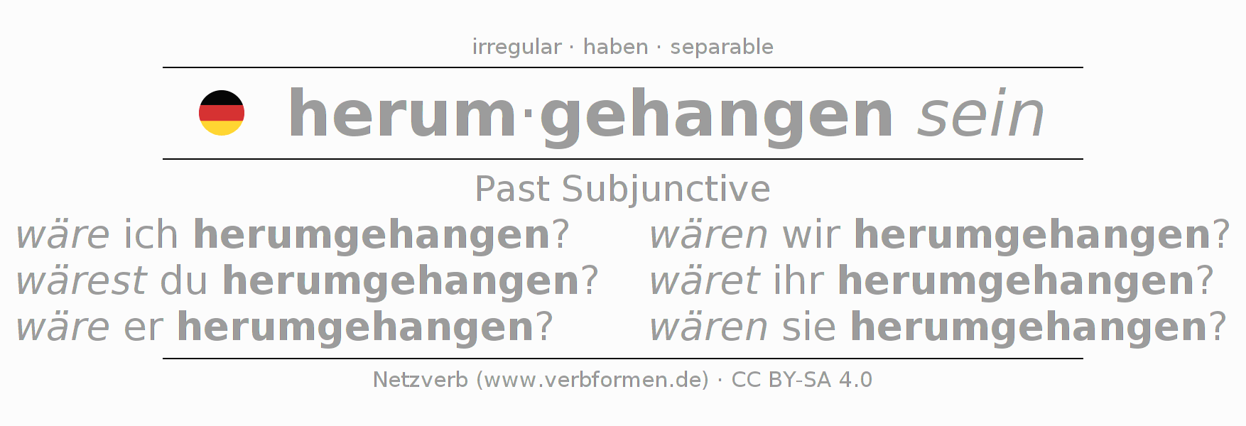 The verb herumhängen fully conjugated in all persons and numbers in the Subjunctive Imperfect