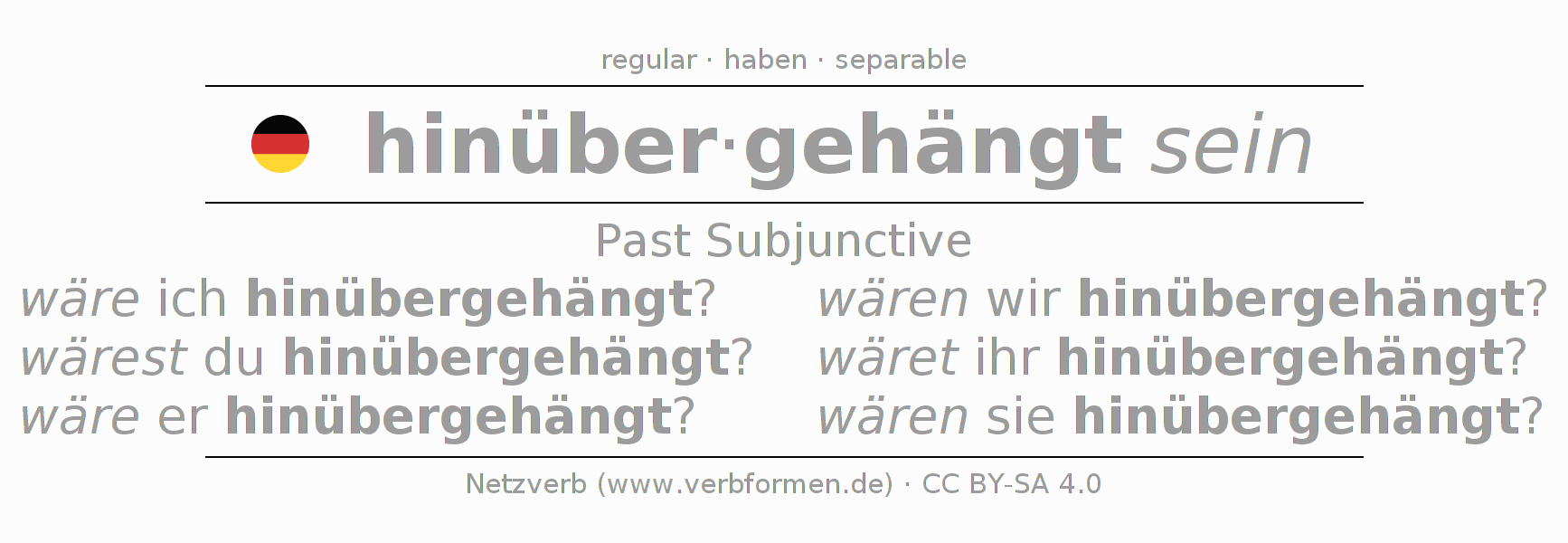 The verb hinüberhängen (regelm) fully conjugated in all persons and numbers in the Subjunctive Imperfect