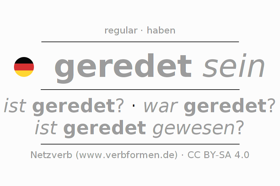The conjugation of reden in Subjunctive Imperfect Form of possibility Statal Passive is wäre ich geredet?, wärest du geredet?, wäre er geredet?, wären wir geredet?, wäret ihr geredet?, wären sie geredet?.The conjugation corresponds to certain grammatical rules. Likewise the requirements for the conjugation of the simple verb forms of reden in Imperfect Subjunctive. Comments ☆